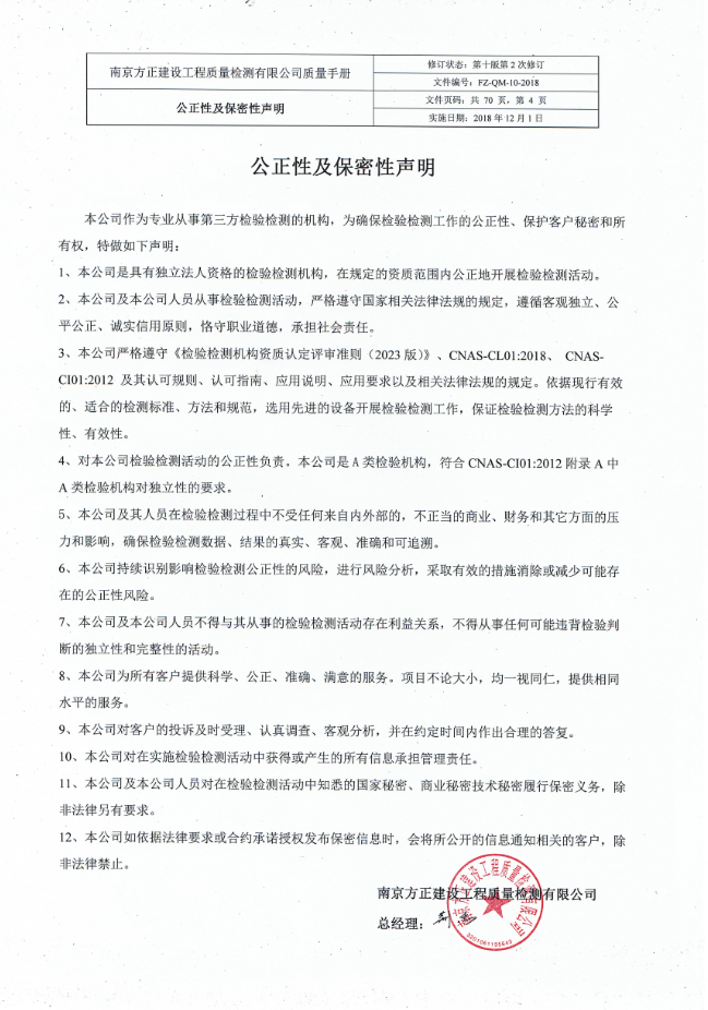南京方正建設(shè)工程質(zhì)量檢測有限公司是1989年省建設(shè)廳批準(zhǔn)成立的具有獨(dú)立法人的專業(yè)工程質(zhì)量檢測機(jī)構(gòu),具有省建設(shè)廳核準(zhǔn)的見證類、專項(xiàng)類及備案類檢測資質(zhì),具有江蘇省測繪地理信息局核發(fā)的測繪資質(zhì)證書,具有中國合格評(píng)定國家認(rèn)可委員會(huì)CNAS認(rèn)可證書,為省質(zhì)量技術(shù)監(jiān)督局計(jì)量認(rèn)證合格單位。入選《全省中小學(xué)校舍安全工程抗震鑒定機(jī)構(gòu)名錄》,為江蘇省高級(jí)人民法院備案的司法鑒定機(jī)構(gòu),是江蘇省房地產(chǎn)業(yè)協(xié)會(huì)房屋安全管理和鑒定專業(yè)委員會(huì)會(huì)員單位,多次獲評(píng)江蘇省建設(shè)工程質(zhì)量檢測機(jī)構(gòu)A級(jí)信用等級(jí)、江蘇省優(yōu)秀檢測機(jī)構(gòu)。